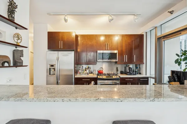 Amazing home with an amazing view! One of premier buildings in West loop. This home features a north east exposure, giving you one of the most dynamic views of the Chicago Skyline. This stunning 2 bedroom 2 bath condo features a open concept, perfect for entertaining. The primary suite features a large bathroom, large walk-in closet. The second bedroom is perfect for guests or a work from home office. This home also has an in unit washer and dryer. You will love having two balconies to view the amazing Chicago skyline. The building features many amenities including gym/exercise room, business center and conference room. Heat, gas, water, WiFi, and cable TV are included in the monthly HOA fee. The building has a 24 hour doorman and on site management. This is a prime location. Convenient shopping(Mariano's is across the street). Close to the L, interstate and the great Chicago night life. Come check this one out! The parking space is an additional $30,000
